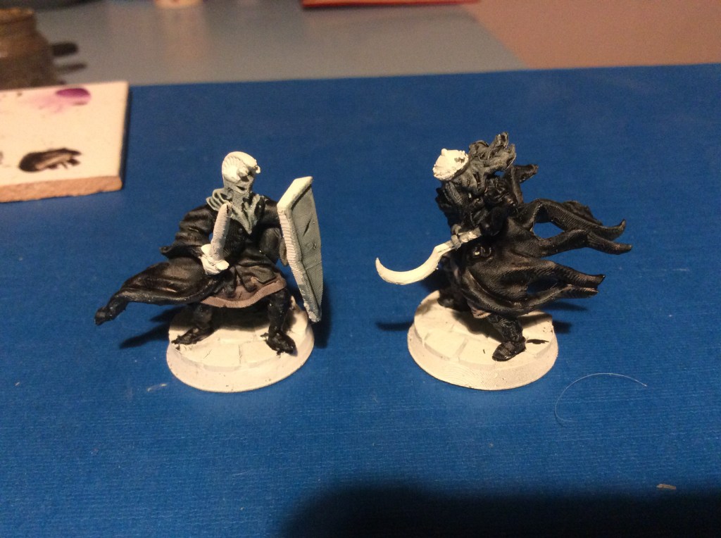 As you can see, there is still an awful lot of white visible, but at least some form of progress has been made. I am not using the GW paint schemes on these and will choose colours that I fancy. I also stuck the wraiths to their bases…