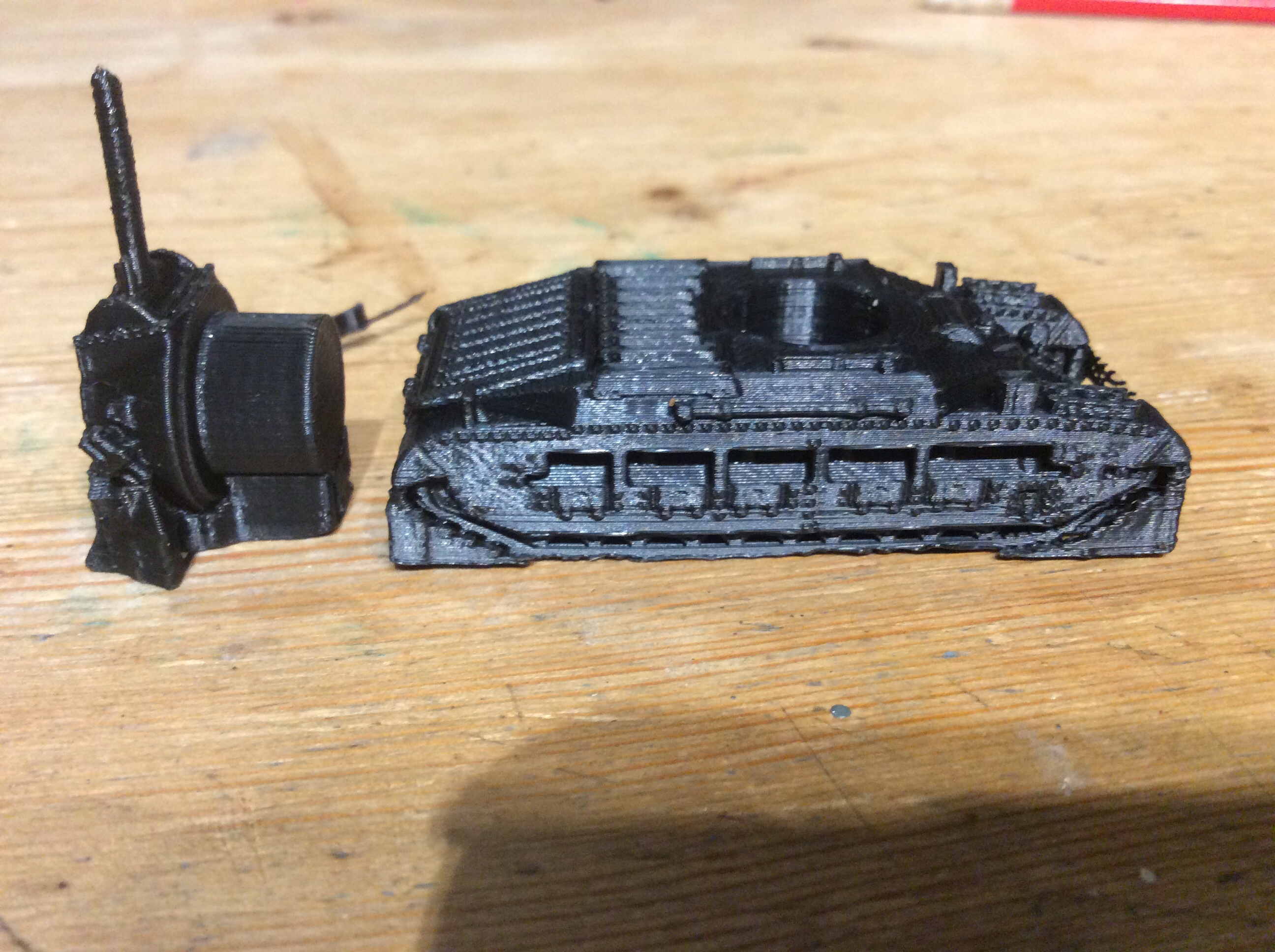 You can really see the support network to help it print properly. I have always printed it vertically before (like the turret). This is the first time on the tracks and to be honest, there is less chance of it getting knocked over, the down side is a lot more waste.