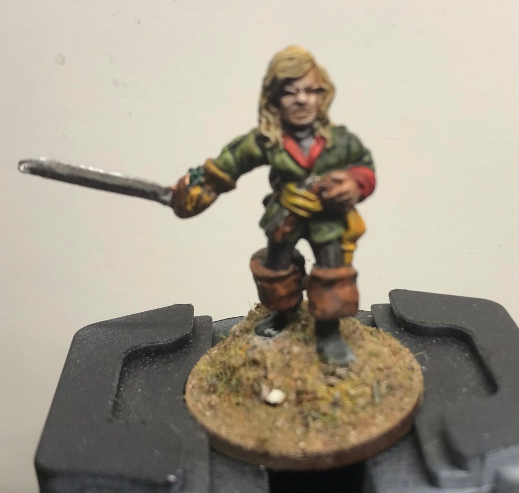 He was a simple miniature to paint apart from some wierd bits where his sword scabbard met his legs behind him. There was no gap there, just metal. I simply painted it in as his tunic.