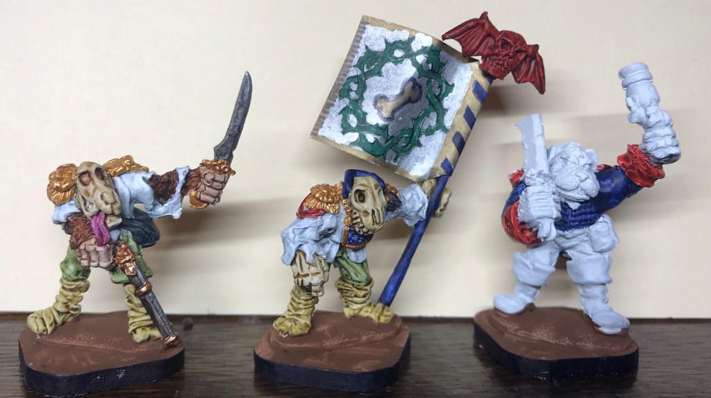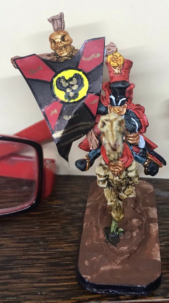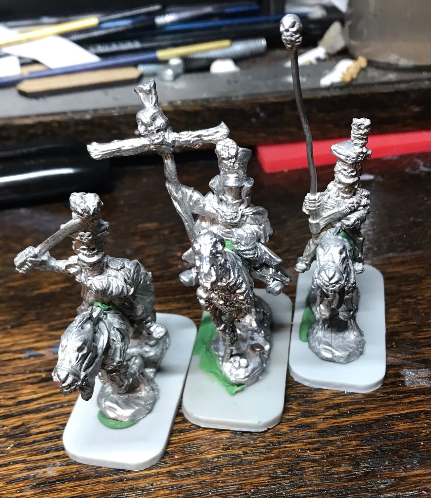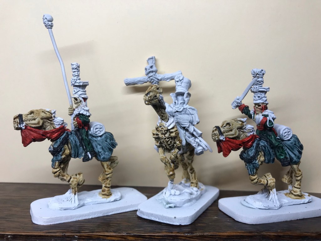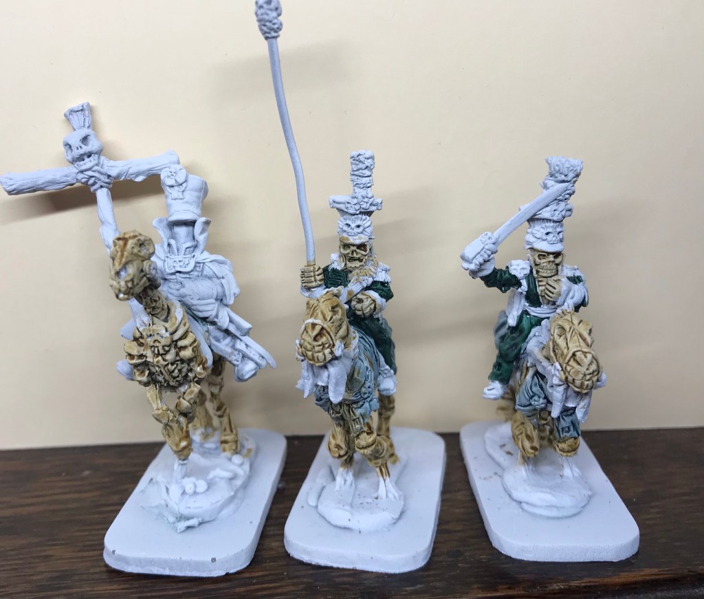 So tonight I made a start on the trio of undead cavalry. All are riding skeletal horses so that was a speedy paint job. Sadly too speedy as I got it places where I didn’t want it and only really noticed when I went to paint the various bits of cloth…